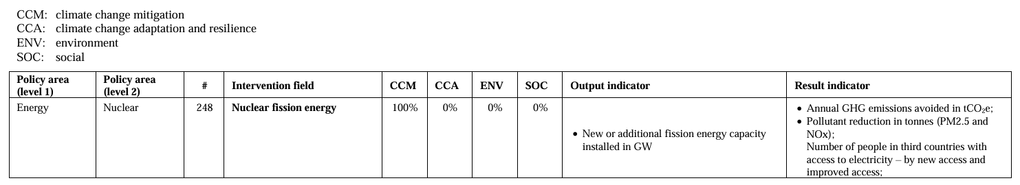 Among the clean technologies supported under the proposal are renewables, sustainable transport, industrial decarbonisation, and — significantly — nuclear power. In the accompanying annex, the Commission includes “new or additional fission energy capacity” among eligible climate mitigation actions, giving it a 100% score under the EU’s green spending taxonomy. That places nuclear alongside top-ranked low-carbon solutions in terms of climate benefit.