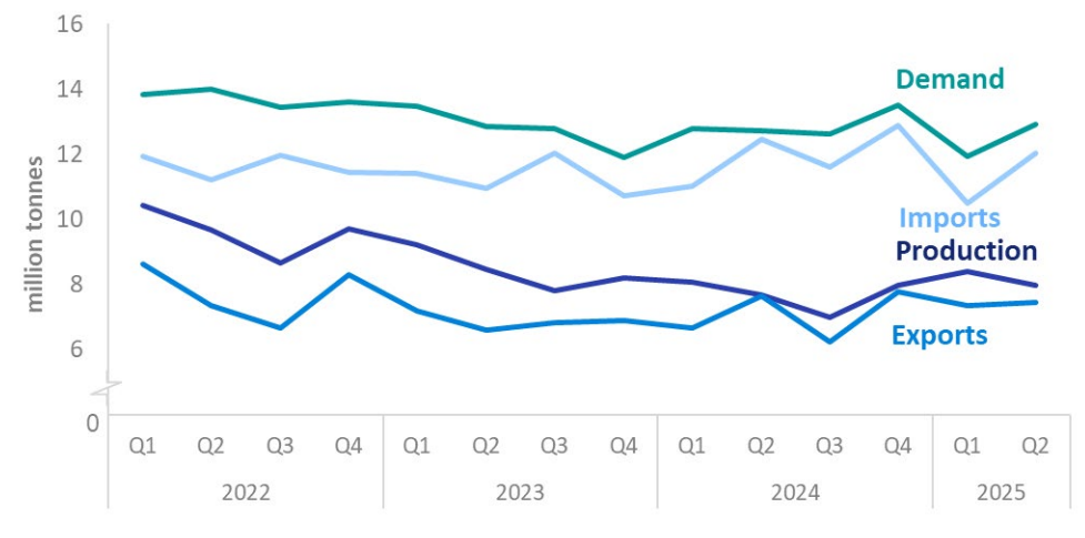 The UK still imports more refined fuels than it exports, though refinery activity has risen slightly in 2025, helped by stable demand and fewer outages. Overall, the industry remains important for jobs and exports, but its role in directly supplying the UK’s own energy needs is limited.